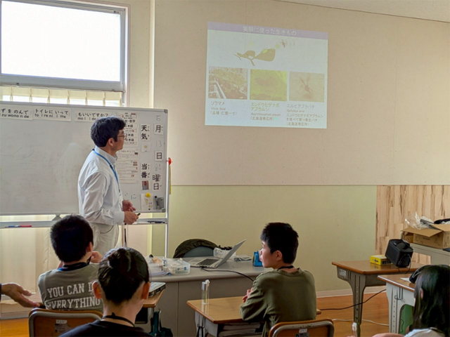自由研究のテーマの決め方、研究の動機、研究の内容や方法、研究結果のまとめ方などを、実際の作品を紹介しながら説明していただきました。