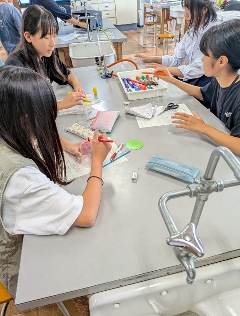実際にプラスチックに絵をかいて、トースターで加熱すると、1/4くらいの大きさになり、みんな驚いていました。