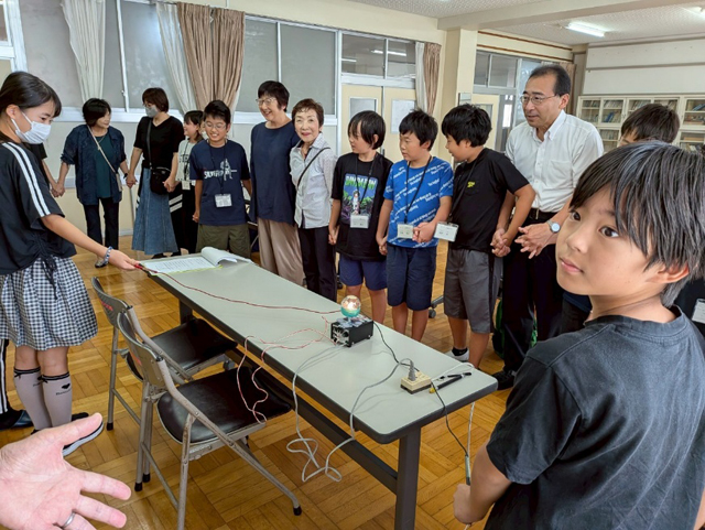 〇西村先生の講座では、「みんなで手をつないでオルゴールを鳴らしてみよう」、「電気や電池を使わないでラジオをきけるかな?」、「一目でわかる電池の直列つなぎと並列つなぎ」など、色々な実験を行いました。