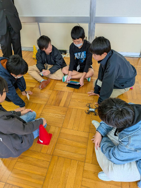 講座では、ドローンの仕組みやプログラミングについてわかりやすく説明していただきました。グループで力を合わせながら、プログラミングを駆使し、ドローンのコントロールを行い、プログラミングの楽しさを学びました。